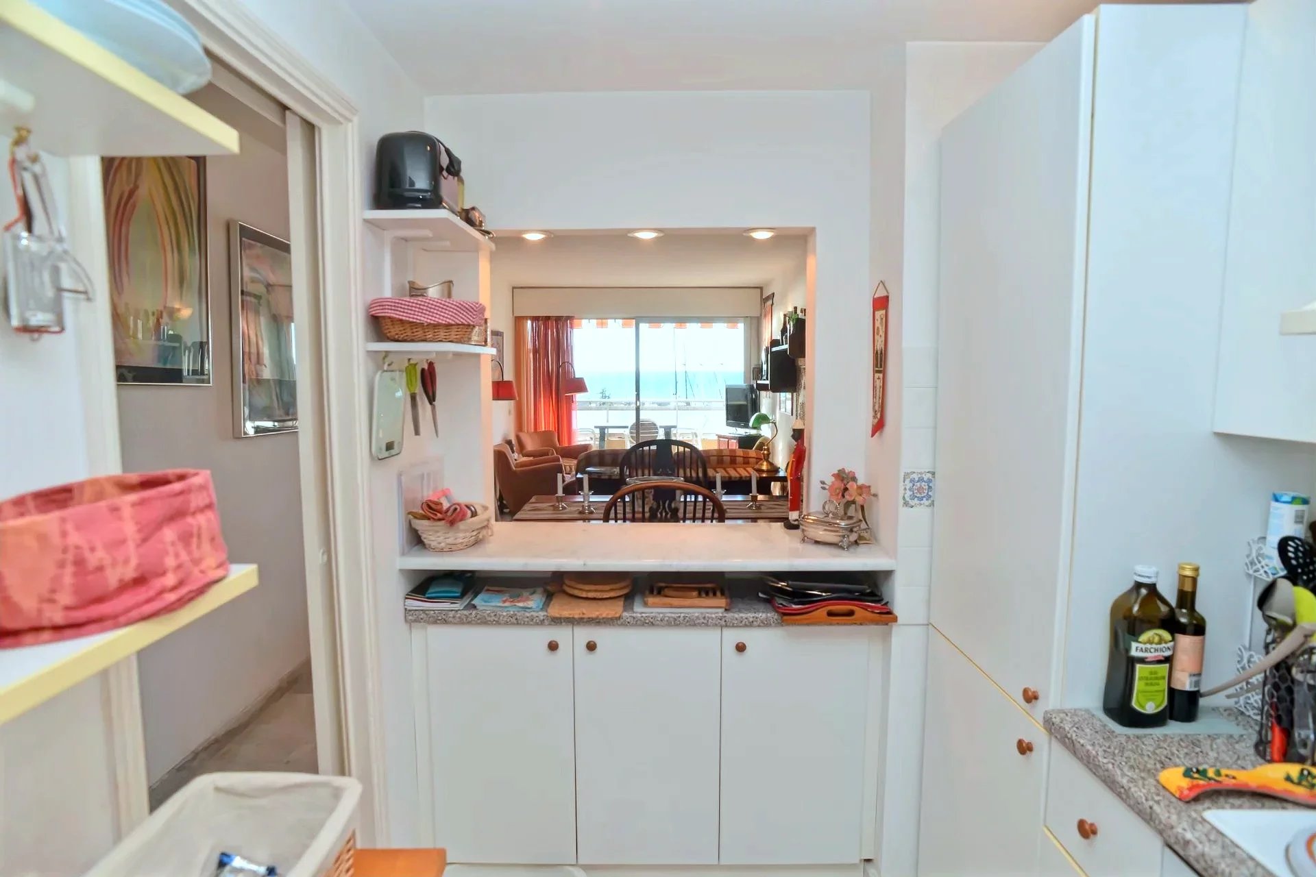 IN ESCLUSIVA - Appartamento trilocale sulla passeggiata a mare di Garavan comodo a tutti i servizi al quarto piano con ascensore di un condominio di pregio, non lontano dalla fermata del bus e dalla stazione ferroviaria di Garavan. L'appartamento beneficia di una doppia esposizione e misura 60 m² calpestabili, gode di vista panoramica sul mare, il porto di Garavan e le colline. Si compone di ingresso, cucina, soggiorno, due camere, sala da bagno con doccia e wc, grande terrazzo davanti alle camere da letto, nonché terrazzo panoramico davanti al soggiorno. Garage privato nel sottosuolo. Riscaldamento e acqua calda autonomi. Tapparelle centralizzate elettriche e facile accesso per portatori di handicap. Condominio da poco rinnovato nelle facciate e nelle parti comuni. Occasione unica, da non perdere !